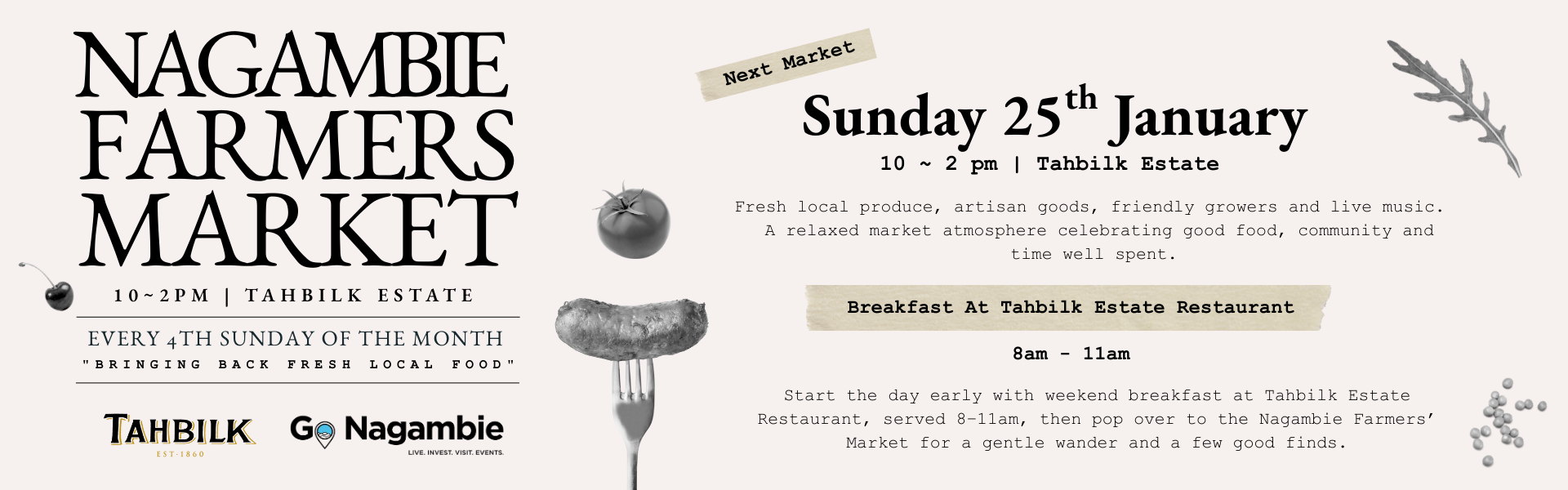 The Nagambie Farmers' MarketEvery 4th Sunday of each month10~2pmThis is a Go Nagambie Market, for more info, please head to